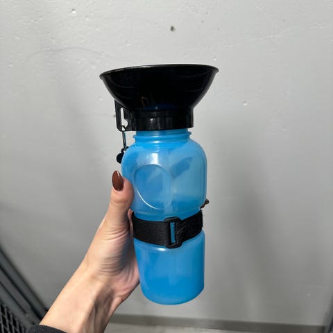 Myyn käyttämättömän koirille tarkoitetun juomapullon, jota on helppo kuljettaa mukana esimerkiksi reppuun klipsillä kiinnitettynä.