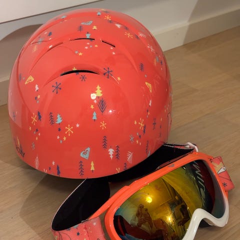 Hyväkuntoinen lasten( alakouluikäinen) laskettelukypärä Rossignol sekä Head lasit