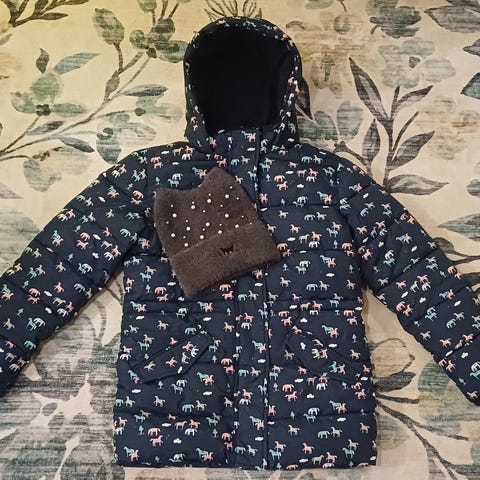 Annetaan lasten kahdet toppatakit. Ylempi kokoa 122 ja alempi kokoa 110.