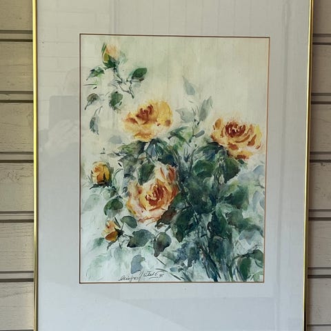 Kehyksessä on hieman kulumaa, mutta maalaus itsessään on hyvässä kunnossa.