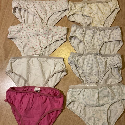 8 kpl lyhytlahkeisia pikkuhousuja neutraaleissa väreissä, kokoa 98-104. Paljon käytettyjä mutta ehjiä. Merkit KappAhl, Lindex, NameIt ja Åhlens.