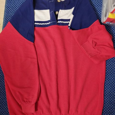 Uusi tummansininen pusero. Itselle liian iso. Koko M.