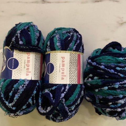 Kolme kerää (50g/kerä) Novita Miami lankaa. Materiaali: 50%puuvilla/50%akryyli.