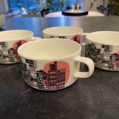 Marimekkon pari kertaa käytössä olleet teemukit, yhteensä 4 kpl.