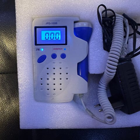 Toimiva Jumper-merkkinen JPD-100B doppler ja ultraäänigeeli. Geeliä on käytetty, mutta reilusti puolet on jäljellä. Doppleri on ollut käytössäsi yhden raskauden.