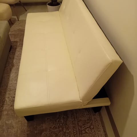 Kuin uusi nahkainen vuodesohva.