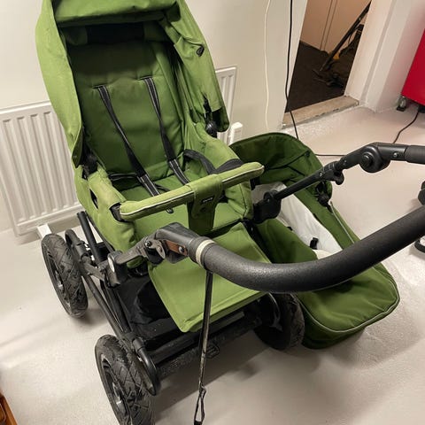 Kunto mielestäni hyvä, naarmuja löytynee jonkin verran rungosta, heijastimet sivuilla kuluneet, kankaissa joitain tahroja muttei isoja/pahoja tai silmiin pistäviä, pesen istuinosan kankaat ennen myyntiä, koppaa käytetty meillä vain hetki.