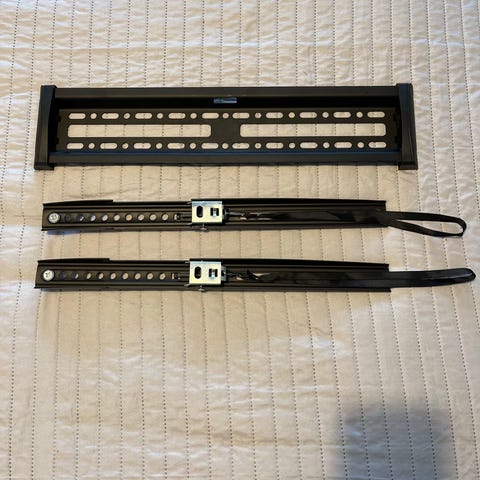 Tv-seinäteline. Itsellä oli 55 tuumainen tv kiinni. Mukana tulee tarvittavat kiinnikkeet.