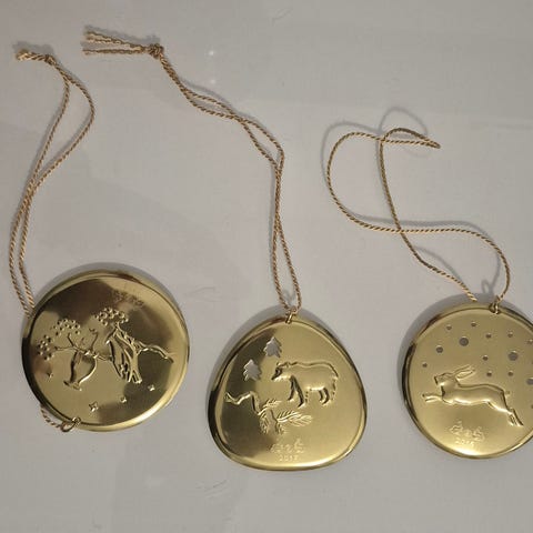 Neljä kappaletta käyttämättömiä Kalevalan joulukoristeita. Kaksi on alkuperäisessä muovipussissa ja kaksi alkuperäisessä pahvipakkauksessa. Joulukoristeiden vuodet ovat: 2011, 2015, 2016 ja 2018.