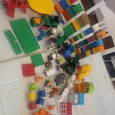 Luigi aloituspakkaus. Muutama pienempi, peruspalikka puuttuu. Luigi toimii (patterit vaihdettava). Hahmot ja laatat ym. tallella.
