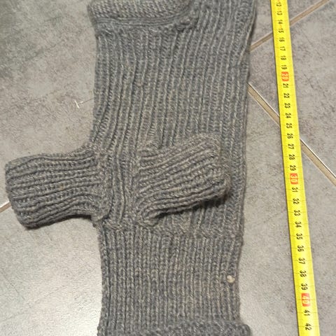 Uniikki, villainen, käsin neulottu talviasu koiralle – villapaita ja pipo.