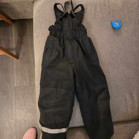 Annetaan Name It:n talvihaalari kokoa 110 cm. Ostettu uutena, ollut yhden kauden kovassa käytössä. Polvien ja pepun kohdalta kangas kulunut ja pehmentynyt. Haaroista kangas revennyt ja se paikattu (kts kuva). Vikojen vuoksi ei siis enää mikään kovien pakkaskelien haalari, mutta leudompiin ilmoihin sopii rymyhaalariksi.