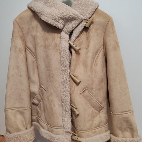 Pari kertaa käytetty takki. Lämmin. Kai kai 59cm, olka-helma 105cm.