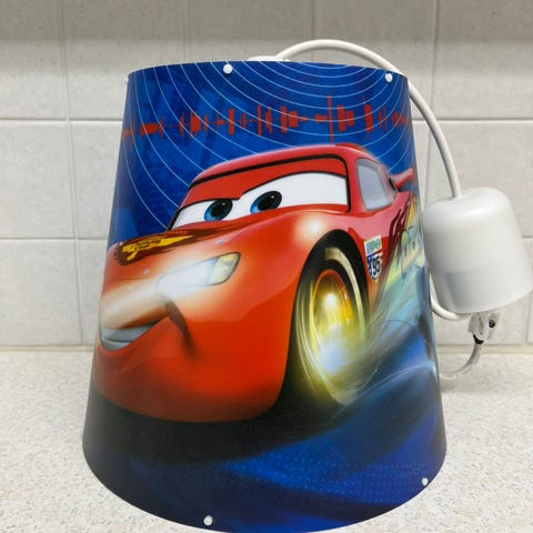 Lasten kattovalaisin autoteemalla. Mukaan iso polttimo. Juuri otettu toimivana pois.
