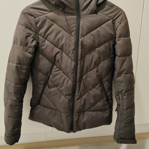 Naisten toppatakki, koko 36, kuin uusi. Väri tummansininen. Karvahupun voi irrottaa..