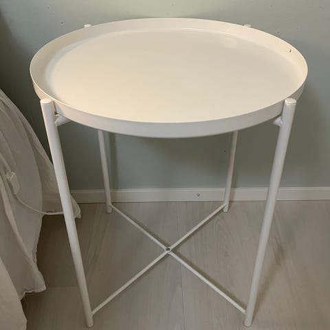 IKEAn Gladom tarjotinpöytä, valkoinen. 45x53cm. Pientä käytönjälkeä, ei kovin hyvin havaittavissa ellei ihan läheltä katso. En postita. Saa tarjota hintaa.
