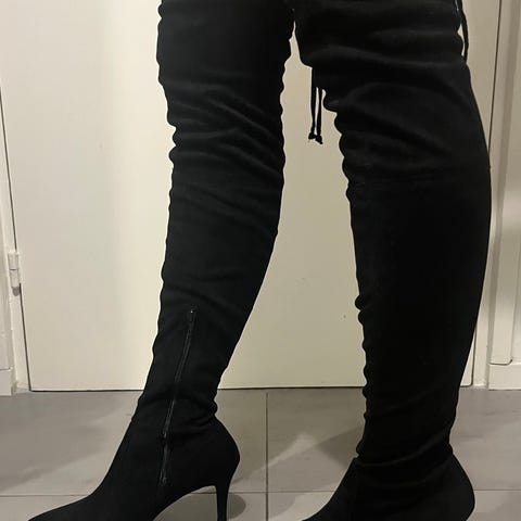 Yläreunassa kiristysnaru, jolloin saappaan varsi pysyy hyvin ylhäällä. Mahtuu paksumpaankin pohkeeseen, koska kangas joustaa.