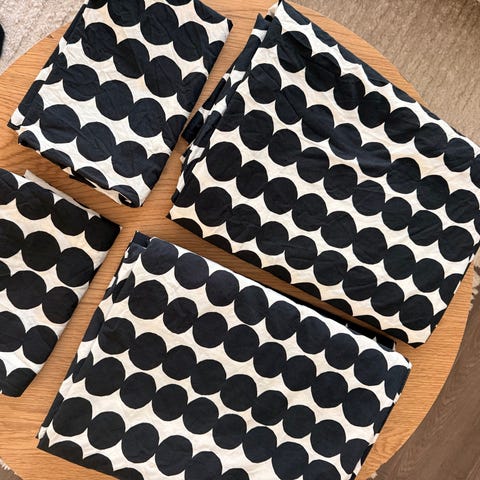 Kuvassa oleva tummempi Marimekon pussilakana ja tyynyliina setti.