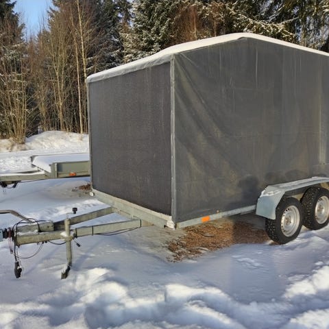 Myydään itse tehty jarruton telikärry lehtijouset, keinuteli. Lava 140x300. Vaatii pientä fiksausta, mm. takalaidan toinen sarana on irti ja valohommaa muuten ihan ok.