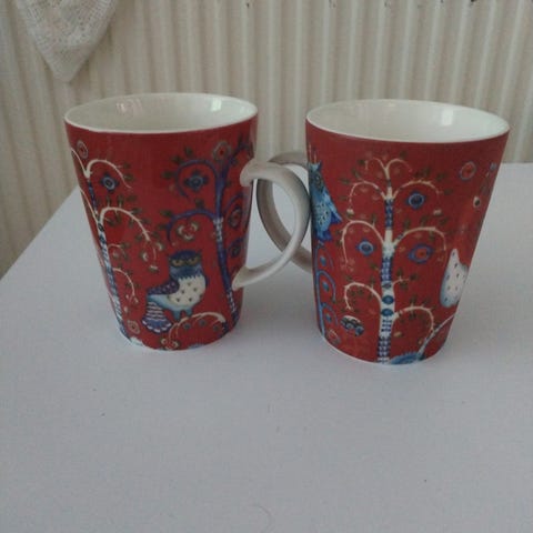 Myynnissä 2 kpl 0,4L, valkoisia Taika mukeja. Joskus käytetty, en löydä mitään kulumiseen viittavia jälkiä.
