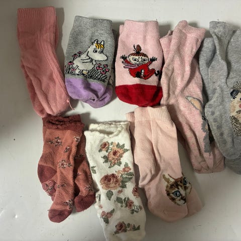 50 paria sukkia. Koko: vauvasta-23 asti. Muutamia pareja avasin kuvaan, muumi aiheisia enemmänkin kuin avatut. On jarrusukkia ja tavallisia ja ohuempaa ja paksumpaa. Kulkeutuu kuopion ympäristössä minne vain.