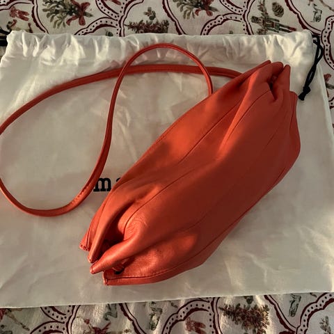 Unikko-kuosinen, karkkipaperista inspiraationsa saanut Karla Denim -olkalaukku on valmistettu puuvillakankaasta. Laukussa on kapea metallisoljella säädettävä olkahihna, vetoketjusuljenta ja sisäpuolella yksi vetoketjutasku.