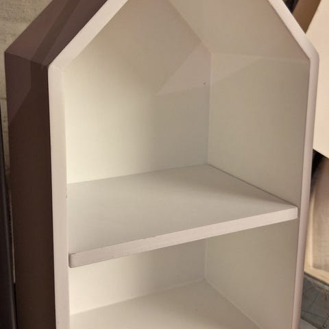 Myydään valkoinen pikkuinen söpö hylly. Ollut kylpyhuoneessa. Maalattu joskus valkoisella maalilla, hieman maali lähtenyt paikoittain.
