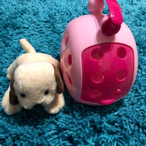 Hyvässä kunnossa oleva koirapehmo ja kantolaukku.