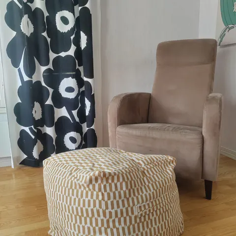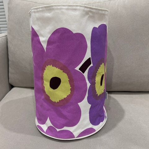 Siistikuntoinen Marimekon kankainen säilytyskori.