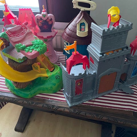 Iso 80x165cm nukkekoti, joka remonttia vailla. Nukkekotiremontoijan unelmakohde. Pieni leikkijä aikanaan koristellut nukkekotia tarroilla (ks. Kuvat). Useita kerroksia (7) ja huoneita. Kaunis ullakkohuone. Nouto Tampereen Hämeenpuistosta, painava. Maalattu päältä harmaansinisellä kalkkimaalilla. Huoneet n. 22cm korkeita ja n. 33cm syviä.