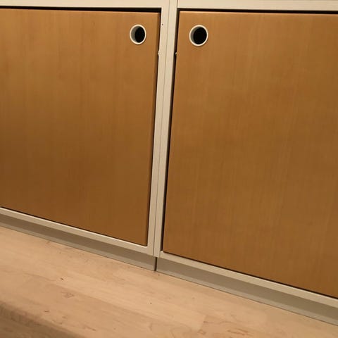 Kaksikätinen ovi, missä oven ylä- ja alareunassa kolo avaamista varten. Ovi sopii Moduli- ja Mup kaappeihin.