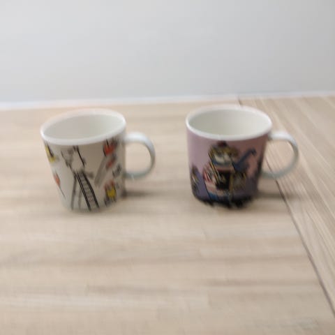 Arabia ABC Collection -sarjan muki, jossa on keltainen väri ja Muumi-aiheinen kuvitus ja kirjain O.