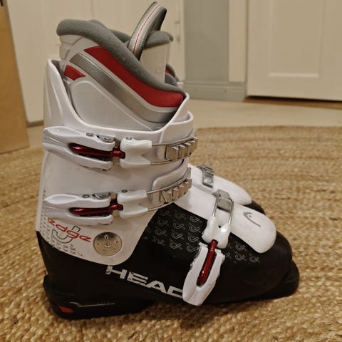 Ehjät ja vielä menee käyttöön seuraavalle harjoittelijalle. Meillä käytössä n. 31-32 koossa (paksummalla sukalla). Sisämitta n. 21 cm, monon ulkomitta 25,5 cm ja DIN koko 220