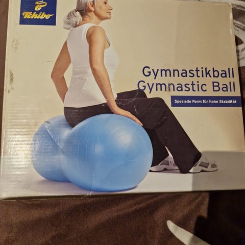 Harmaa jumppapallo. Halkaisija 60-65 cm. Pumppu mukana. Ehjä. Kuvassa ei ole pumpattu täyteen.