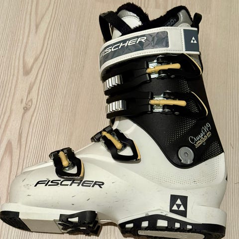 Naisten laskettelumonot, Fischer, Cruzar-W-9. Väri musta, kullanvärisillä yksityiskohdilla. Käytetty mutta kunnossa. Pehmeä sisäkenkä. On lämpömuokattavissa. Ei ole muokattu. Koko 26, vastaa kokoa n.41. Kaikki lukot ym. Kunnossa. Hyvä perusmono.