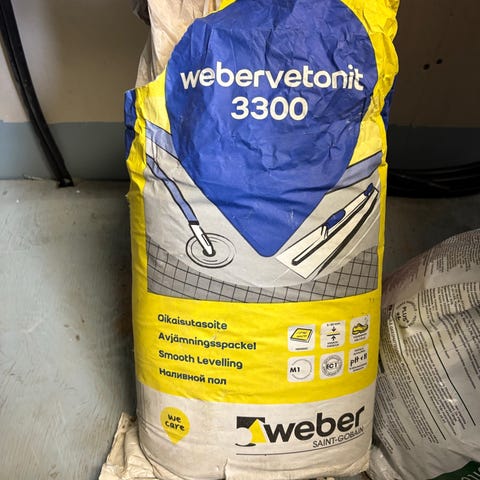 Myydään remontista yli jääneet avatut pakkaukset Weberin laatoitustuotteita. Tuotteet on hankittu 21.11.2025 tai sen jälkeen ja säilytetty huoneenlämmössä. Alla on lista tuotteista ja suluissa avaamattoman tuotteen vertailuhinta (K-rauta). Kuvaan on merkitty jäljellä oleva määrä (bruttopaino). Tuotteet myydään yhteishintaan 100 €, vain nouto.
