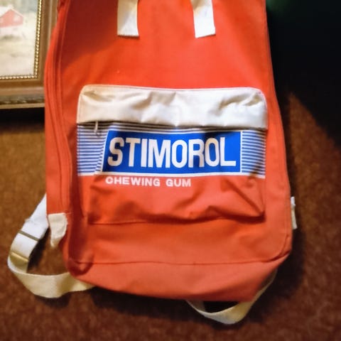 Stimorol on purukumimerkki ja reppu on mainostuote (nykyään vintage), jota on myyty tai annettu kylkiäisenä 1980- tai 1990- luvulla. Se ei ole tällä hetkellä yleisesti saatavilla mistään vähittäiskaupoista.