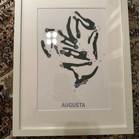 Masters 2015 oli Jordan Spiethin vuosi. Paikan päältä ostettu lippu on kehystetty laadukkaaseen puiseen kehykseen.