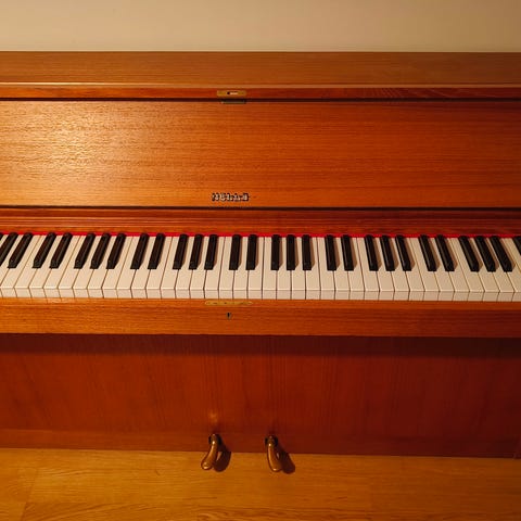 Perus piano, tyttärillä ollut - nyt tarpeeton. Annetaan pois, ei voida olla nostoapuna, eikä voida kuljettaa - joten hakija vastaa näistä.