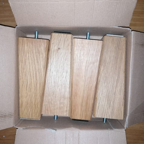 Kolme settiä 5€/setti kalustejalkoja / sängynjalkoja.