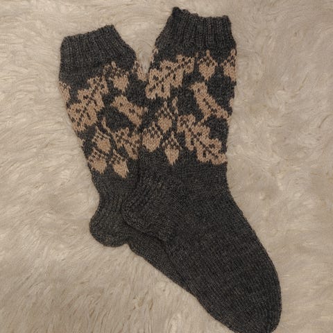 Itse neulotut miesten tummansiniset villasukat valkoisilla raidoilla!