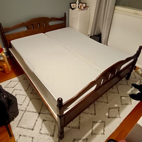 Tukeva puinen parisänky.