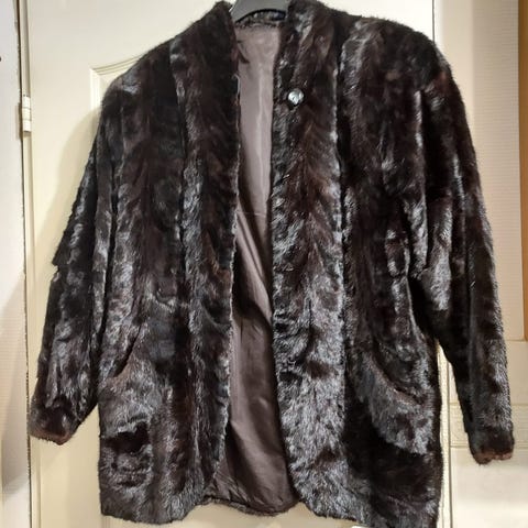 Ritva Fallan suunnittelema jakku takki. Hyvässä kunnossa. Turkikset ovat aitoa minkkiä. Jakku takissa on isot tilavat taskut jossa myös minkkiä reunuksissa. Todella kaunis ja laadukas. Ovh 250!