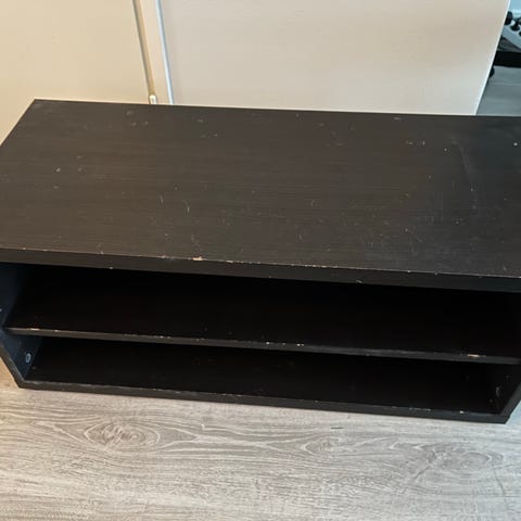 Ikean tv-taso ”liukuvilla” laatikoilla. Kuvissa näkyy takaosan vika, myöskin laatikot vähän vaatisivat kiristystä, jotta kulkisivat paremmin. Ehjä kuvassa näkyvää takalevyn halkeamaa lukuunottamatta. Vain nouto!