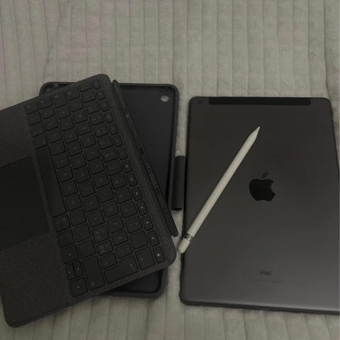 For sale iPad mini 2021 with 8.3 inch display. Includes Apple Pencil 2, Logitech wireless keyboard, matte screen protector for drawing and a folio stand case.