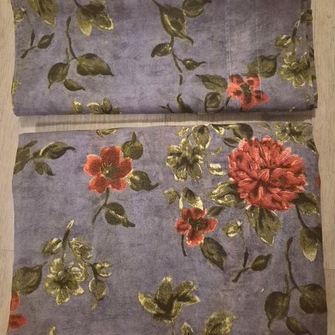 Myydään käyttämättömät verhot leikkimökiin. Valo vääristää värejä.