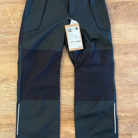 Uudet mustat Reiman Kaura välikausihousut. Laput kiinni. Näissä on säädettävä vyötärö, 10000mm vesipilari, teipatut saumat, joustava vyötärö ja lahkeensuut. Ei jalkalenksuja. Sisävuori on sileä. Meillä ei ehtinyt käyttöön, siksi nyt eteenpäin.
