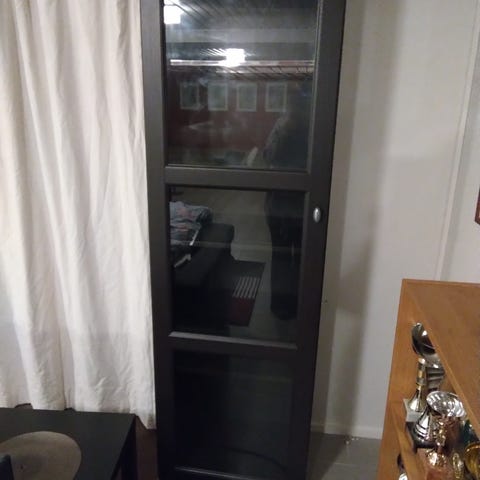Erittain hyvässä kunnossa kaappi, sopii kui vitriinikaappi, sisällä on lasillinen hylly