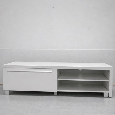 Laadukas TV-taso modernilla, kiiltävällä pintamateriaalilla. Tilava vetolaatikko tarjoaa runsaasti säilytystilaa, ja toisella puolella on valmiit johtoreiät, jotka helpottavat siistiä kaapelinhallintaa.