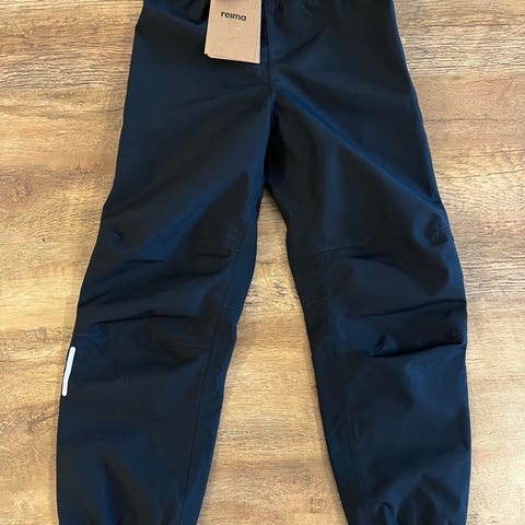 Uudet mustat Reiman Lento välikausihousut. Laput kiinni. Näissä on säädettävä vyötärö, 10000mm vesipilari (muutenkin vedenkestävät), nappi vyötärössä sekä vahvikekankaat polvissa ja takapuolessa. Ei jalkalenksuja. Verkkovuori ja vetoketjutaskut. Vaikka meillä nämä eivät ehtineet käyttöön, aiemmista vastaavista on kokemus, että nämä ovat Reiman parhaat (kestävimmät) välikausihousut!